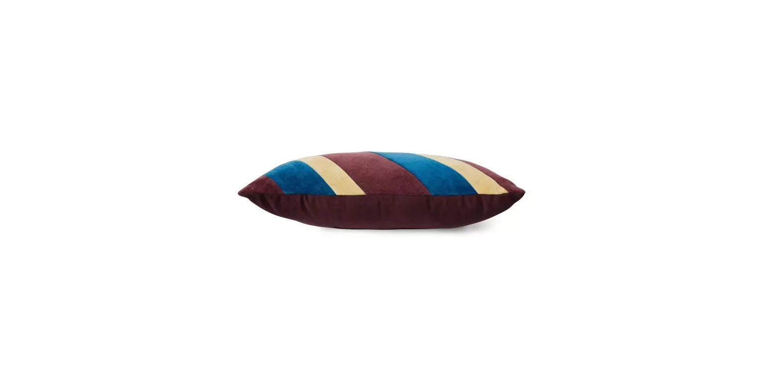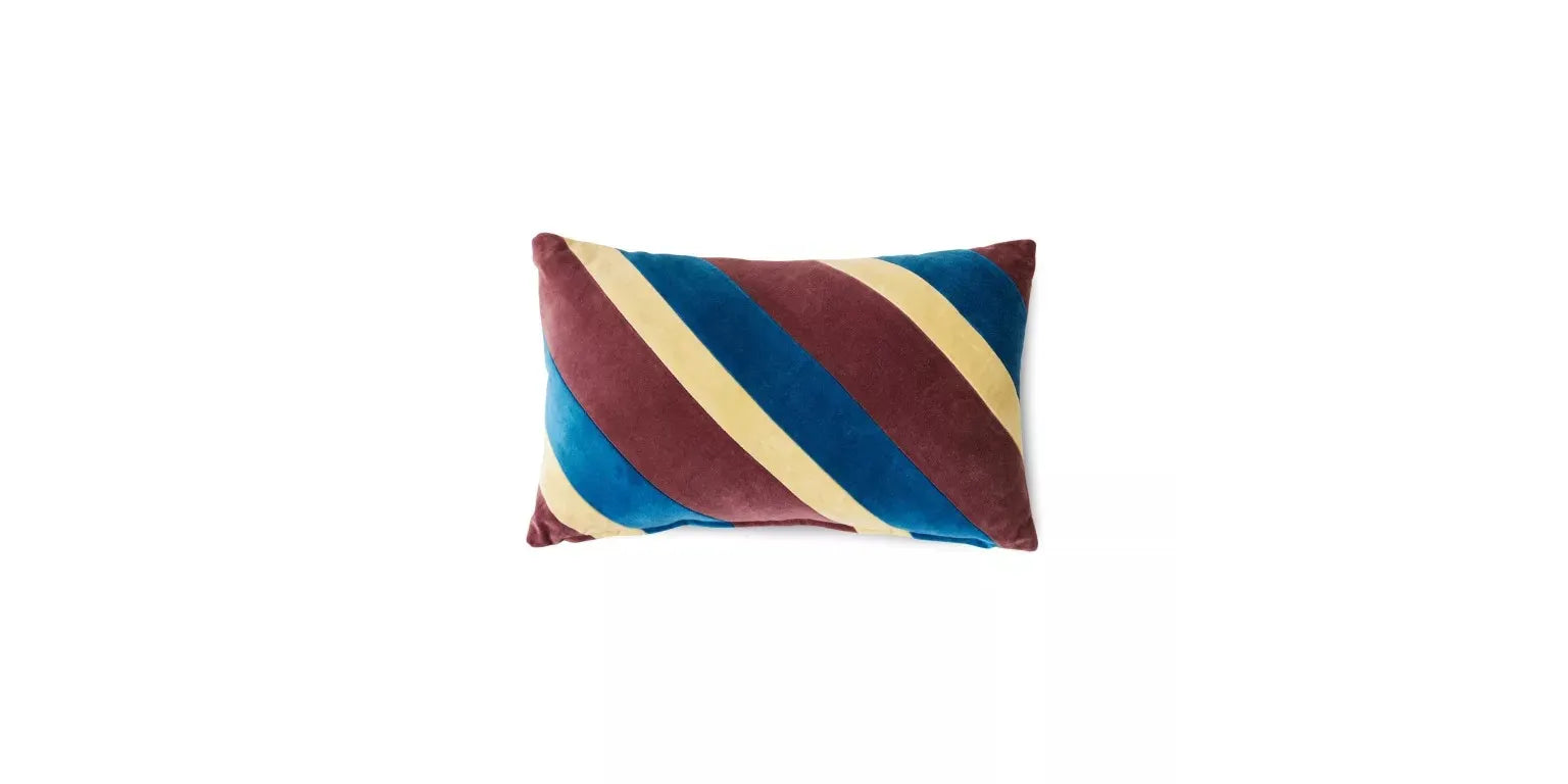 De gestreepte fluwelen kussens hebben de kracht om op te vallen. Hun weelderige texturen en spannende kleurencombinaties maken ze perfect om te mixen en matchen, of als eyecatcher in een ingetogen compositie.
