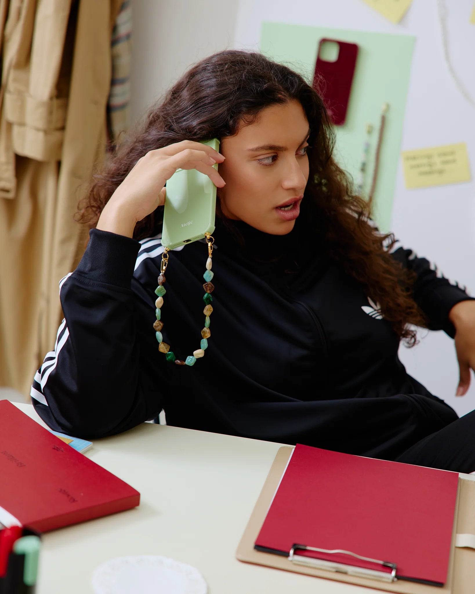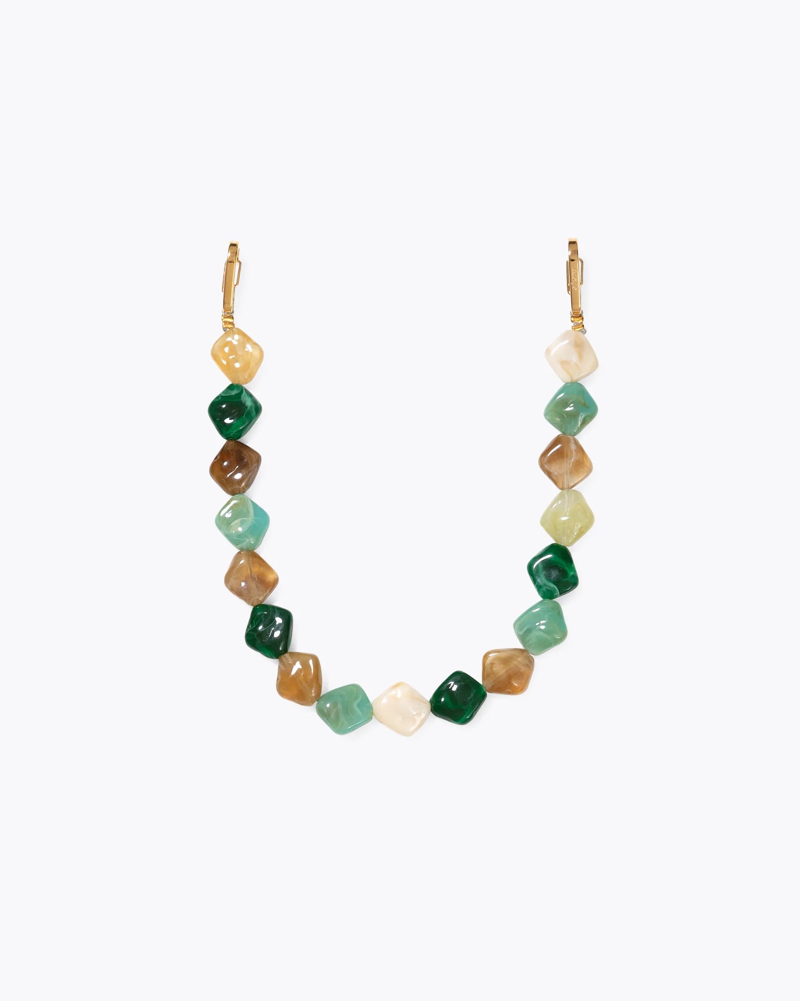 Het Spill The Tea Koord combineert zachte groene, warme neutrale kleuren en gedurfde vormen voor een stuk dat modern, moeiteloos en precies de juiste hoeveelheid uitgesproken aanvoelt. Dé conversation starter van de dag.